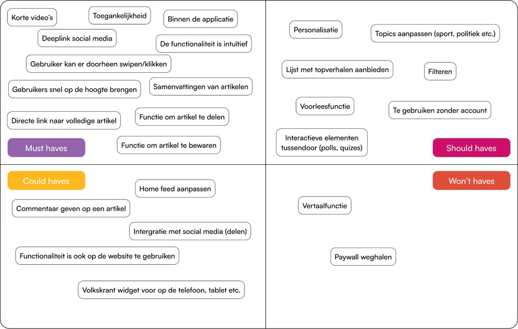 Het eerste concept (De Volkskrant Stories) was iedereen zijn favoriet. Hieronder een paar belangrijke meningen die zijn gegeven tijdens de gesprekken: